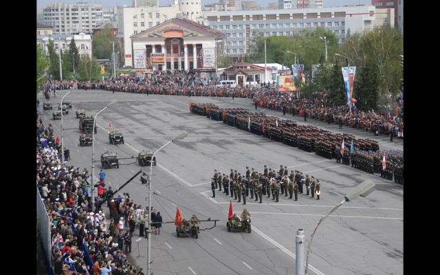 В параде приняли участие курсанты Кадетского корпуса, Омского танкового инженерного института, ракетчики, пограничники, подразделения МЧС, казаки и другие части.