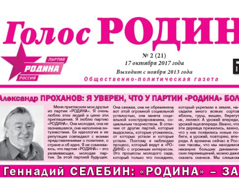 17 октября 2017 года вышел новый выпуск газеты "Голос РОДИНЫ. Брянск".